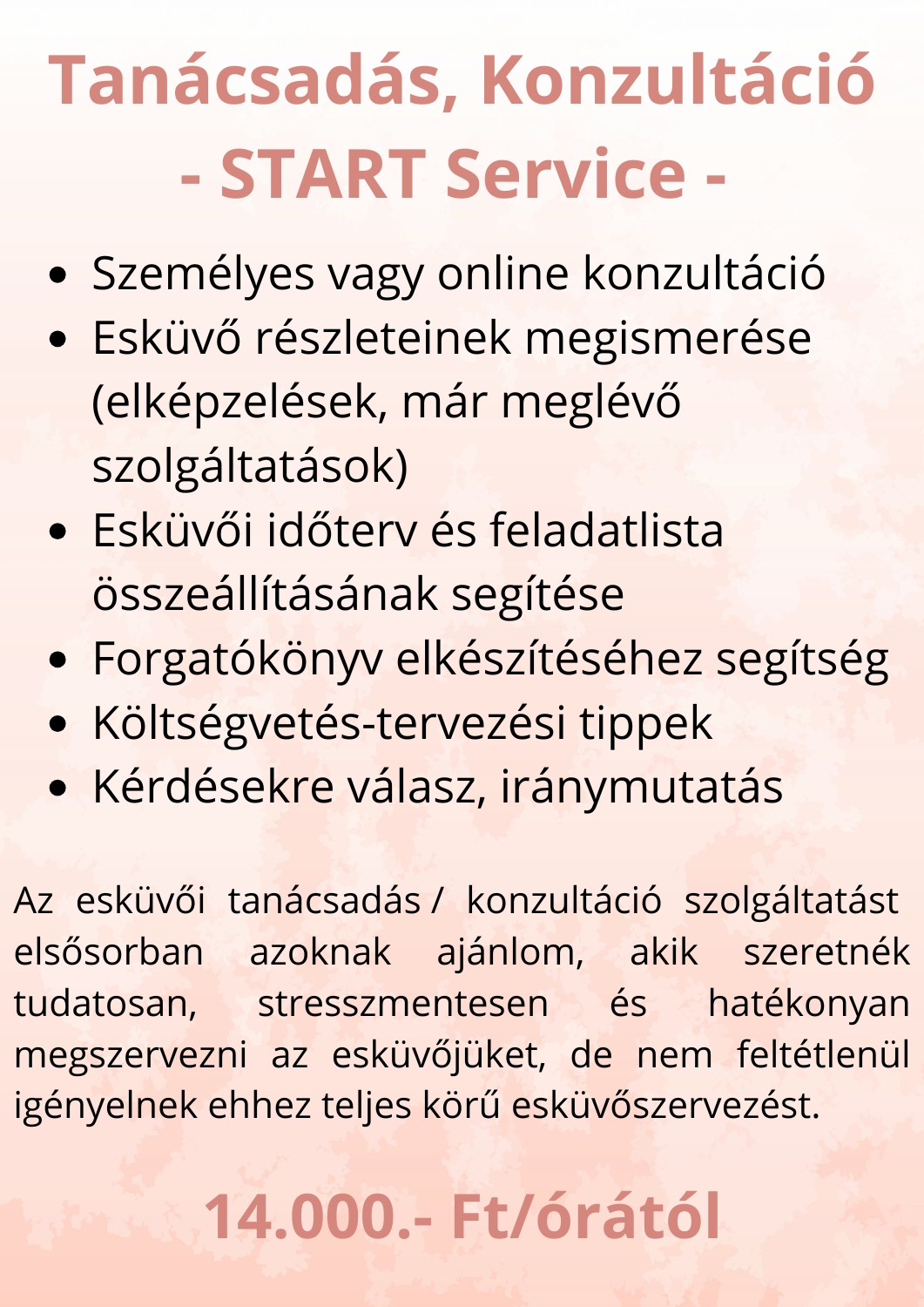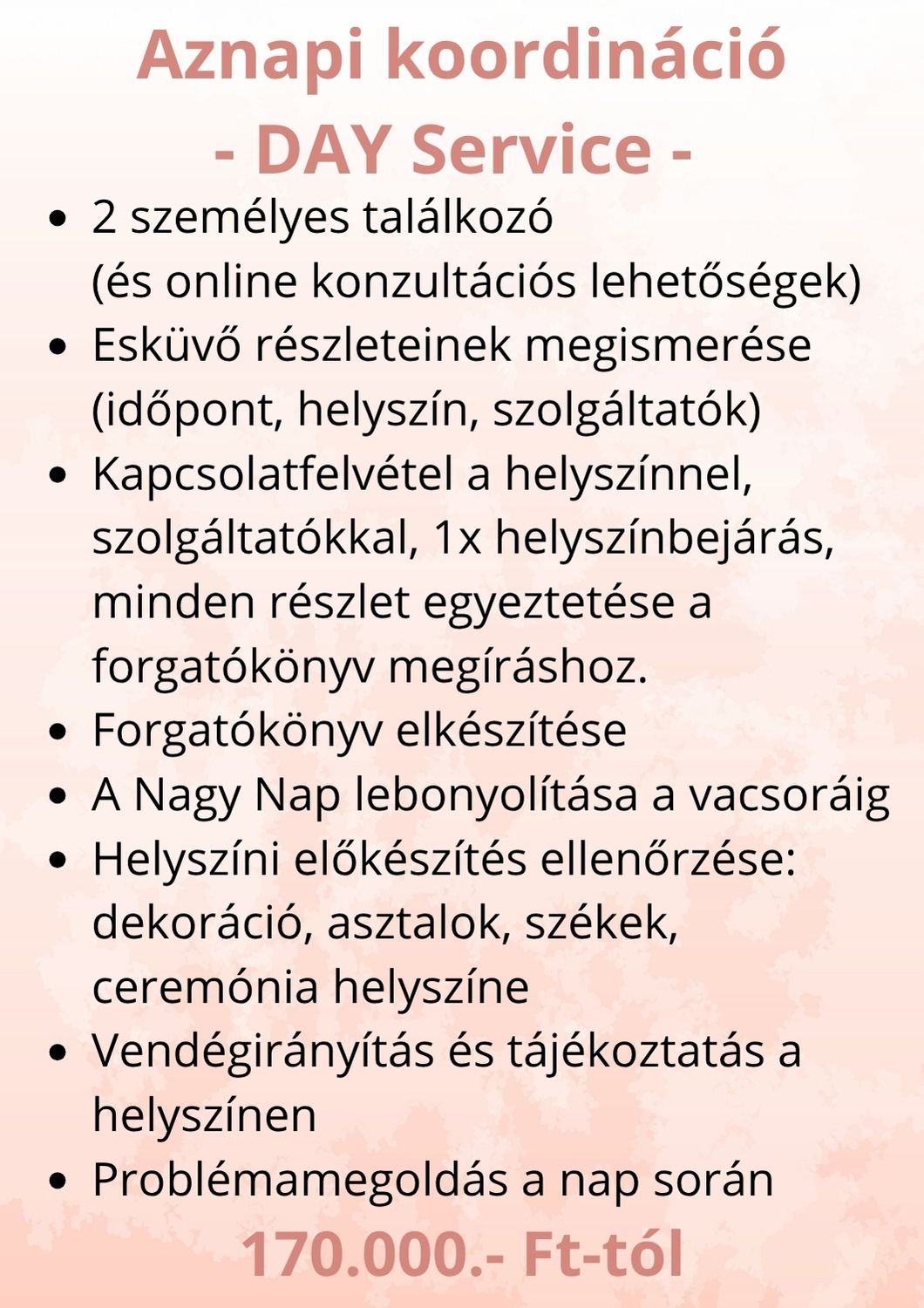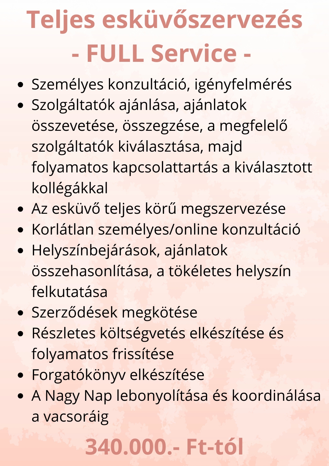 Esküvőszervezési szolgáltatásaim a következők: